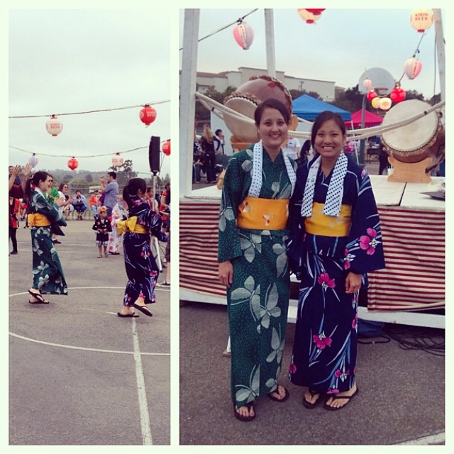 I’ve spent the last three days reading dense scholarly articles on emigration from Meiji Japan, studying online photographs (the indignity of newly arrived internees at Poston stuffing their mattresses from huge piles of straw) and bland (and therefore even more infuriating) administrivia from the War Relocation Authority, material from the collections donated to Dr. Grace Yeh at Cal Poly–the most memorable there include photos of Keith Sanbonmatsu’s parents, he so handsome and she so radiant, and a wartime suitcase that reads S. KOBARA in white letters–tracing family relationships, following, through the census, family movements, and finding passenger manifests that show the date, port of arrival, sometimes the home village in Nagoshima and the ship’s name of the ancestors of my high school friends and, more recently, my students. They have been long, long days and I had to stop because 62-year-old eyes can take only so much. So I was beginning to feel a little sorry for myself. Then, happily, I found just now and am stealing without shame, this photo of the Nakanos at this year’s SLO Obon.