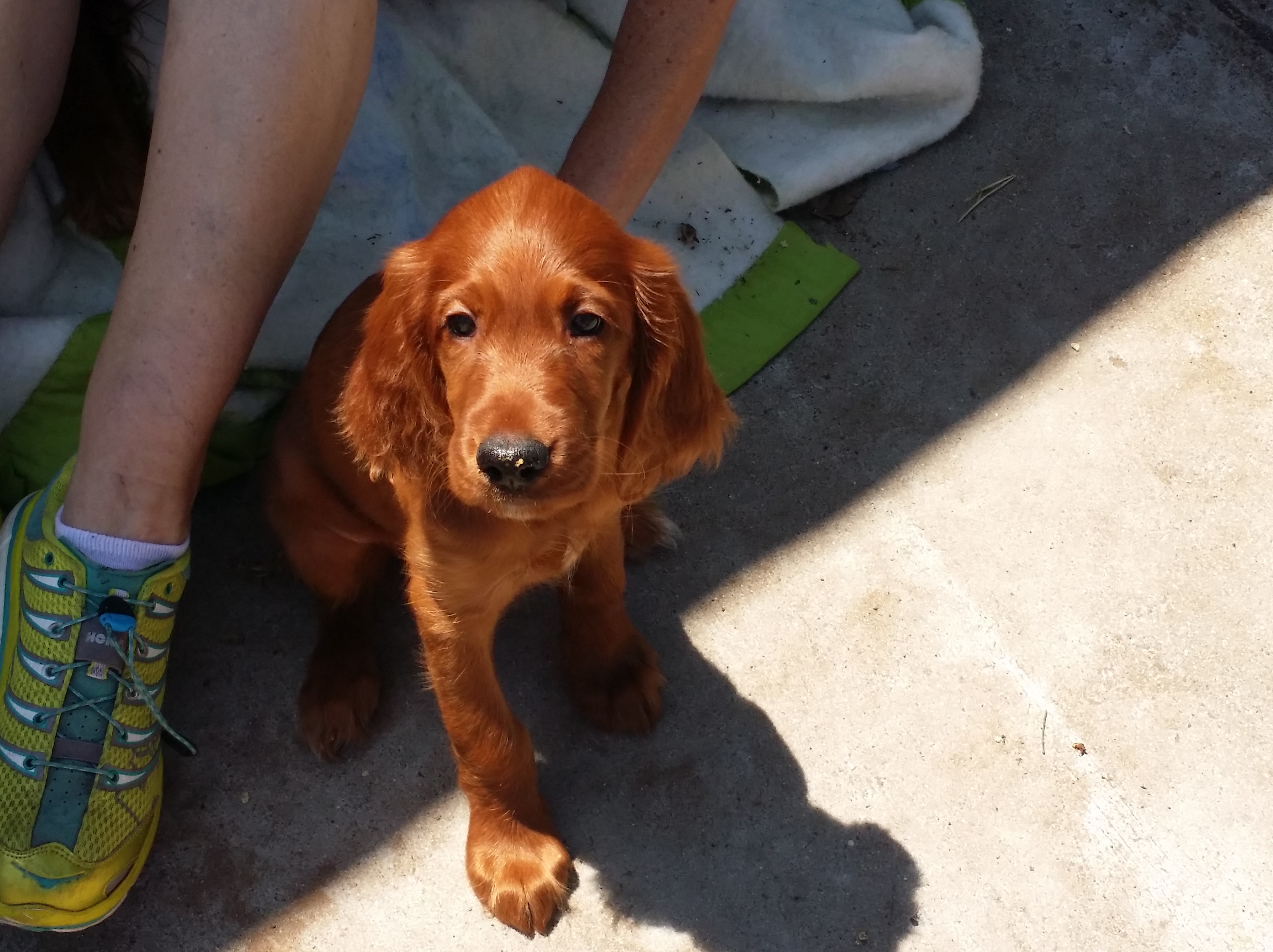 Little Sister 22 Monday Jun 2015 Posted by ag1970 in Uncategorized ≈ Leave a comment Our newest family member: Eight-week-old Irish Setter Brigid. Share this: Share on X (Opens in new window) X Share on Facebook (Opens in new window) Facebook Like Loading... Related