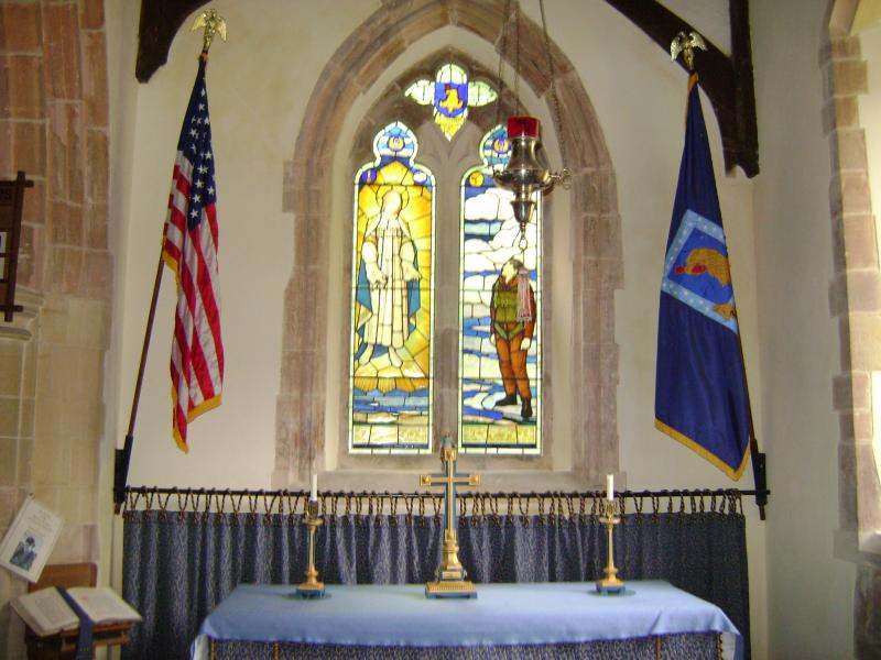 There is, instead, an American in his flight suit, looking heavenward, toward a risen Christ. The window is a poignant reminder of the constancy of the people of Norfolk, who learned to love the young men who had made little Lady Moe their queen.