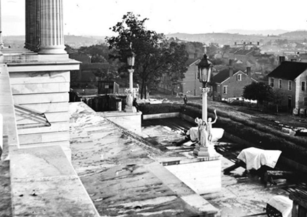 The state capitol steps at Nashville, protected by an artillery battery, 1864. Library of Congress.