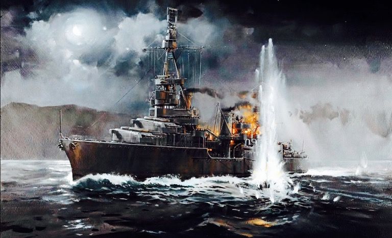 Artist’s conception, the torpedo hit on Northampton. A destroyer escort would be named for Donald Runels