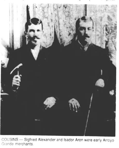 The cousins came to Arroyo Grande as merchants in the 1880s, setting up a haberdashery and dry-goods store on the corner of Branch and Bridge Streets, on the site of today’s “Something Different” store, which was once the Bank of America.