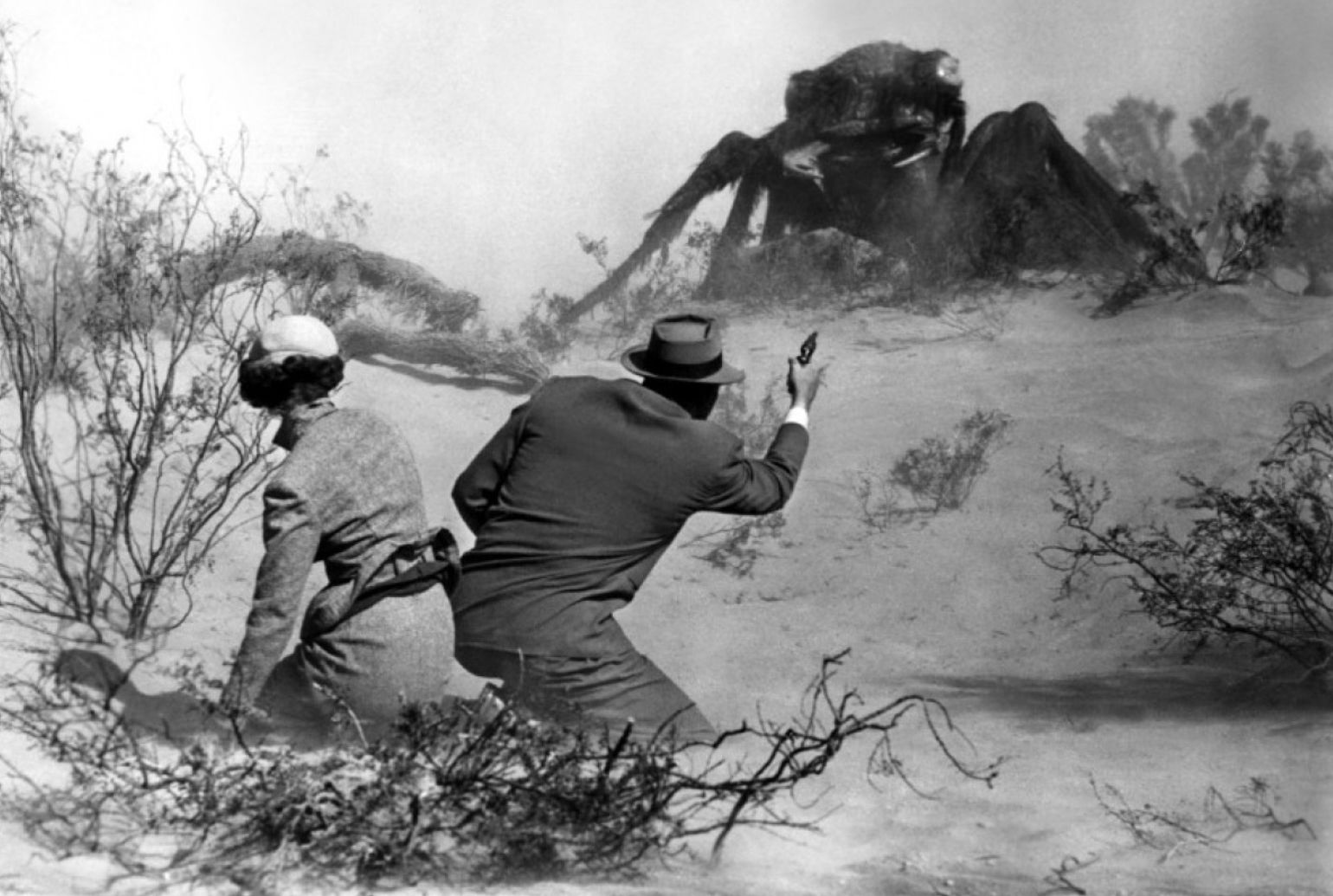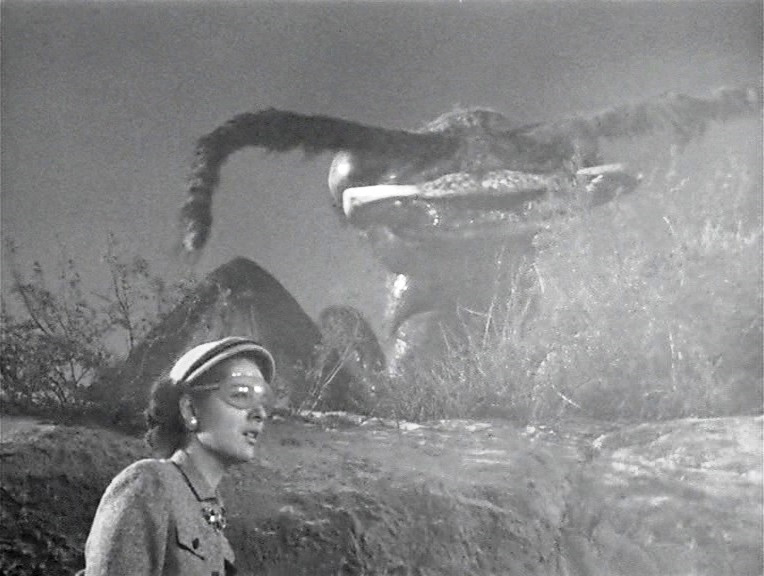 The same holds true for the 1954 classic and I think one of the best scifi/horror films ever made, Them! It’s established pretty early on that Joan Weldon’s Dr. Patricia Medford is by far James Arness’s (FBI agent James Graham) intellectual superior, but who goes wandering absent-mindedly through a desert dense with drooling Atomic Ants the size of RVs? Yup, The girl.