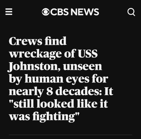 Earlier this month, when the submersible found the wreck of the Johnston at 20,000 feet, her five-inch guns were still elevated, still pointed toward the enemy.