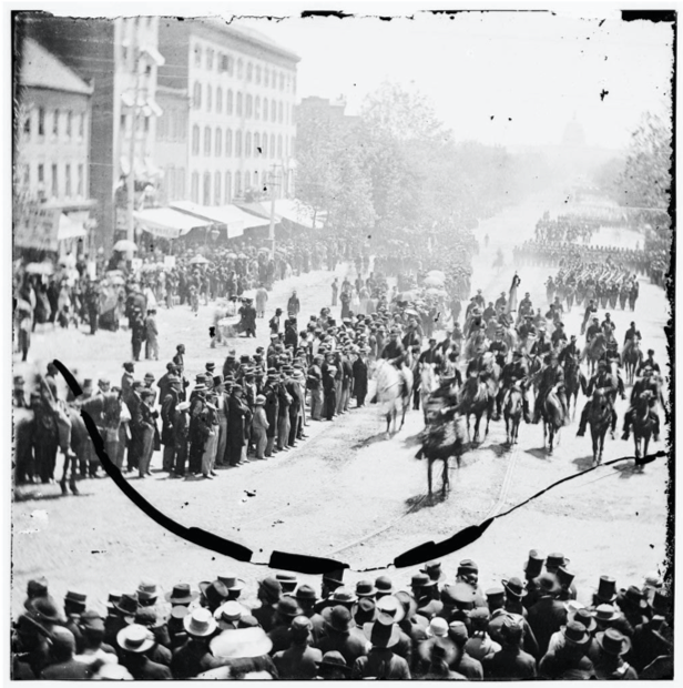 Many Union soldiers had demonized themselves and by extension all of their comrades by celebrating their mustering out with epic alcohol binges and episodic violence throughout the demobilization summer of 1865.[4] A Chicago civilian’s insulting comment about William Sherman set off a saloon brawl that cascaded into a riot that police were helpless to put down. Only the fortuitous appearance of the legendarily hard-drinking Gen. Joseph Hooker, who had the credibility to intervene with combat veterans, brought the violence to an end.