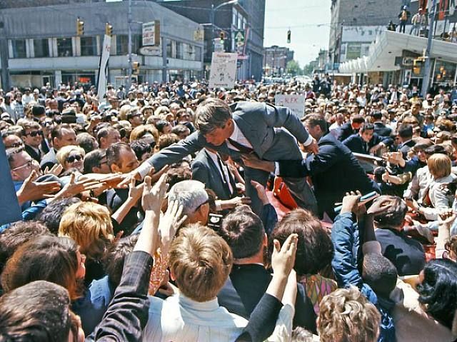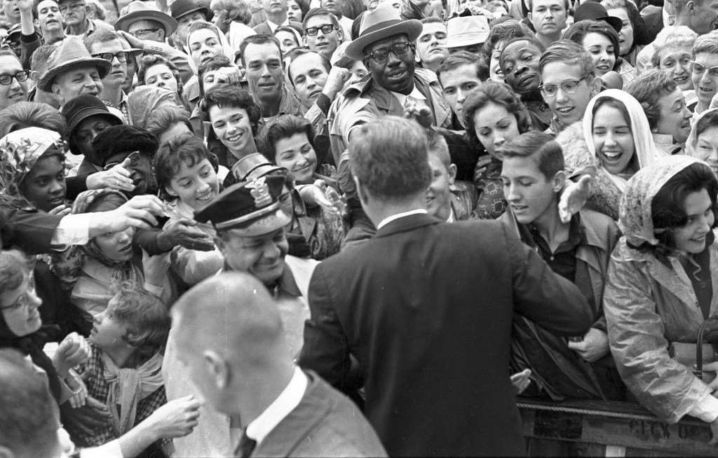 The response to him in that campaign was powerful, and in the old photos, the only equivalent from that time that I’ve found, sadly, is in the crowd greeting his brother in Fort Worth a few hours before the assassination.
