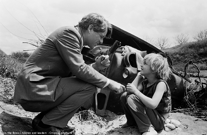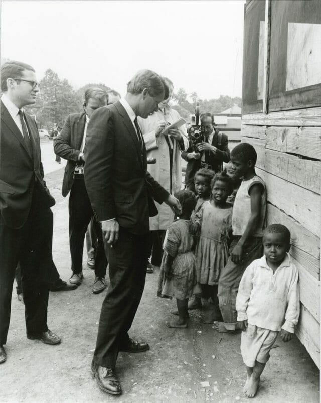 JFK was cerebral and aloof and his little brother—like me— burned hot, but both evoked deep emotions. Robert, for example, could not keep a pair of cufflinks. They were invariably torn off by crowds who felt the overwhelming urge to touch him. Bodyguards grabbed him around the waist to keep him from being absorbed by the people who were so drawn to him. If the brothers were unalike in many ways, the faces of the people who’ve come to see them are similar. They are joyful.