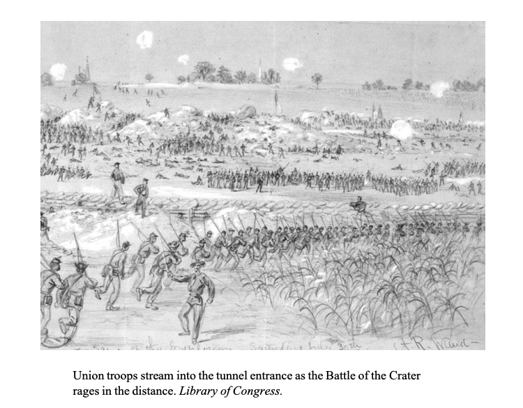 That war’s catastrophic 1916 Battle of the Somme would begin with the detonation of a massive mine under German lines—the crater it created remains today, looking like a massive sinkhole amid a patchwork of farm fields. A mine explosion also would mark a surrealistic and shocking moment in the trenches of Petersburg. The crater that explosion left behind was, of course, The Crater, and Adam Bair and the 60th Ohio were eyewitnesses to the tragedy that followed.