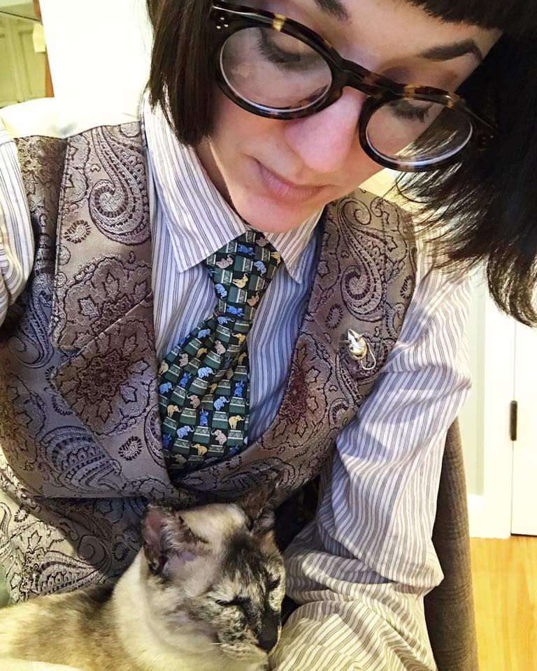 This is my favorite photo of Erin. We both like cats. Elizabeth and I acquired two cats early in our marriage, both calicos, named Hadley (after Hemingway’s first wife) and Bumby (the nickname for Hemingway’s eldest son).