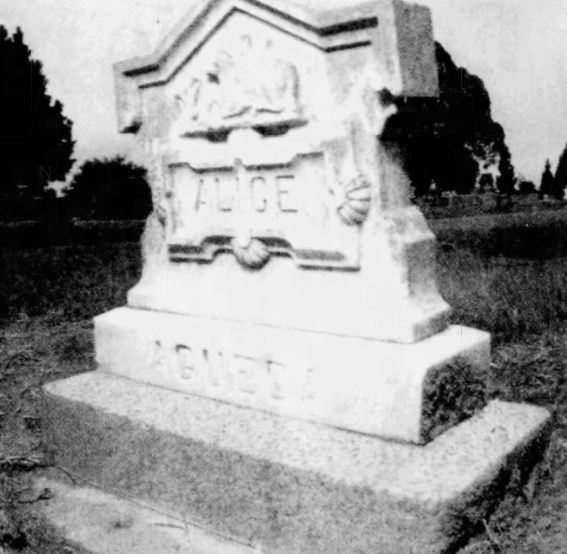 Alice Agueda–buried in the Arroyo Grande Cemetery–was brutally murdered in December 1926 by a farmworker on the Agueda place along Huasna Road. She was twelve years old.