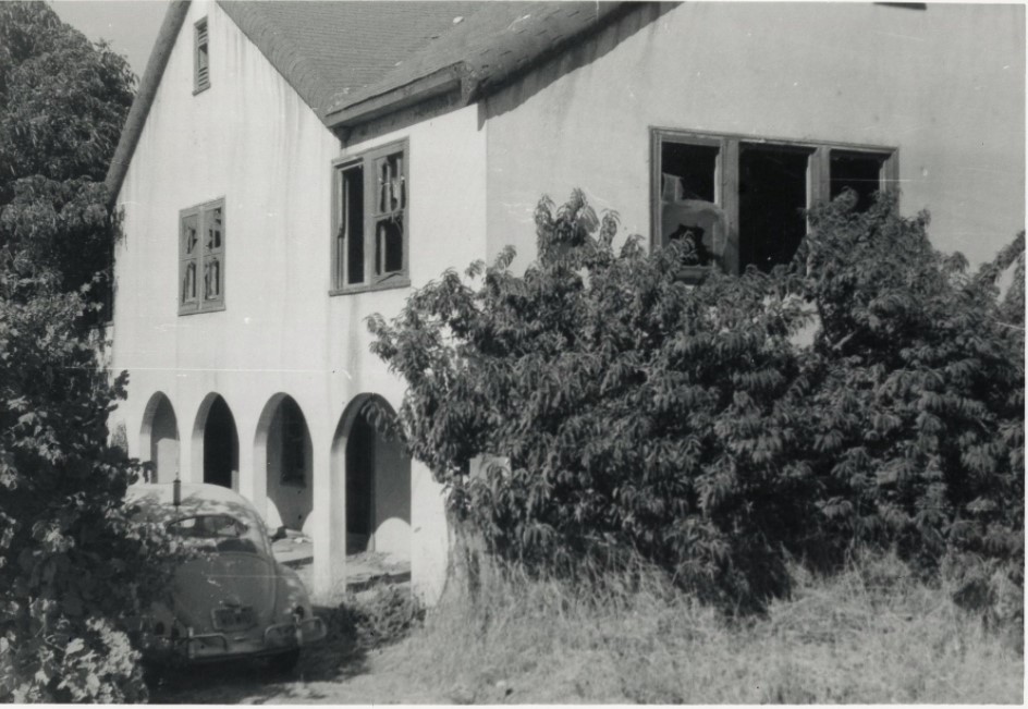 The home, the subject of many newspaper articles over the years, is notoriously haunted. My friend David Cherry lived in it when we were AGHS students, and the adobe bricks are visible, down to their straws, in the basement, where Dave and I shot pool. The Cherry family several times heard soft footsteps on the basement staircase and then the door to the kitchen atop the staircase would slowly open.
