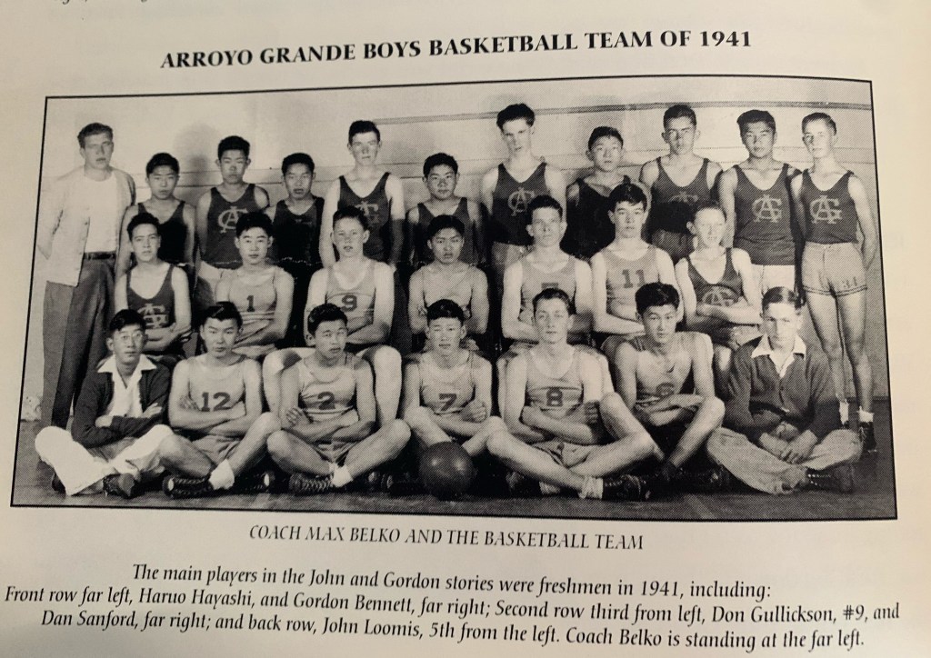 It’s not your imagination. There were a lot of Japanese-Americans who went out for basketball. That’s the next, tragic connection that the Paulding Gym has with history. On April 30, 1942, buses would assemble in the high school parking lot just outside to take local Japanese-Americans into internment. Among them were the Nisei seniors of the Arroyo Grande Union High School Class of 1942. There were fifty-eight seniors that year. Twenty-five were Japanese-Americans.