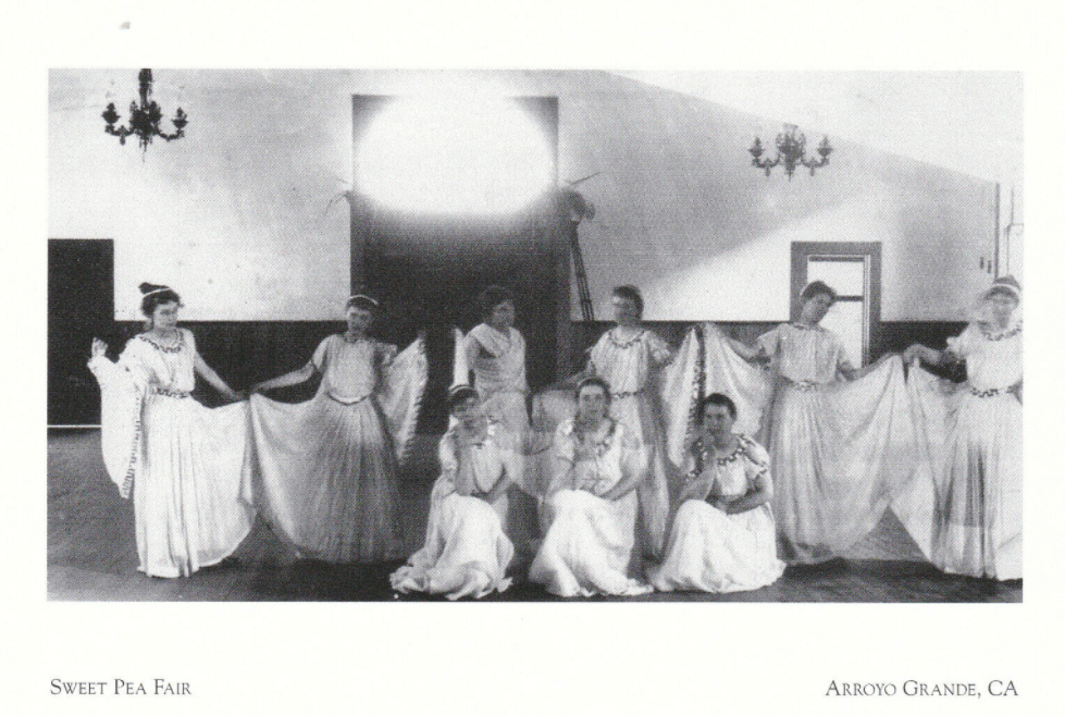 And the Columbia Hall was important—kind of an early 20th Century version of today’s Clark Center—that was the scene for everything from political meetings to Temperance lectures to recitals and plays. And dances: These young women, for all intents and purposes, are dancing in tribute to the local cash crop, the sweet pea, in the Columbian Hall.