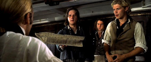 What lifts this film above your typical escapist fare is the friendship between Aubrey and his dearest friend, the ships’ doctor, Maturin. The two are replicas of Kirk and Spock: Aubrey’s passionate Romantic is pushing aside Maturin’s Enlightenment scientist. Only two things bind the two: their love for each other and their love for music. This just might be my favorite scene. Aubrey has just captured his nemesis, Acheron, only to discover that he’s been hoodwinked. So, since they have plenty of time, given this Age of Sail, Aubrey and Maturin turn to Boccherini.