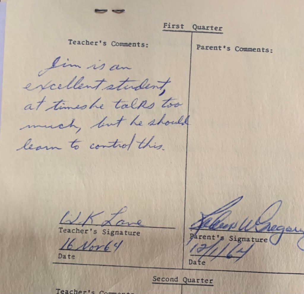 Talkative or Interrupts Frequently: Got me in trouble from first through twelfth grades. “Jimmy talks excessively in class” was a constant on my report cards. And when someone else is the important announcer, doing the play-by-play of a baseball game, I’m the color guy who interrupts with pithy remarks about Yogi Berra’s socks. If you’re old enough to remember the Smothers Brothers, I’m Tommy.