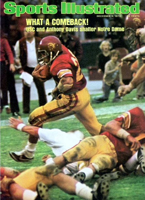 By the way, I had a grand Thanksgiving there once. We were watching Notre Dame slaughter USC and the gang was making fun of me, the California boy. Then, some of you may recall, Anthony Davis scored six touchdowns and SC won going away, 45-23.