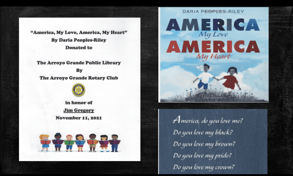Okay, this was a big deal. The Rotary Club of Arroyo Grande, in gifting our library with this book, has divined my subversive message in teaching U.S. History for almost thirty years: We are all Americans and we all belong to each other. I spoke to the Rotary Club about Arroyo Grande’s Civil War veterans. What else could they have fought for except for the idea that we are all Americans?