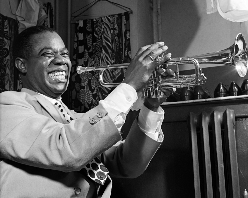 His story, from Ken Burns’s Jazz, and the archival footage of Armstrong talking so gently to his audience between numbers likewise enchanted my students. Armstrong made them proud to be Americans, too.