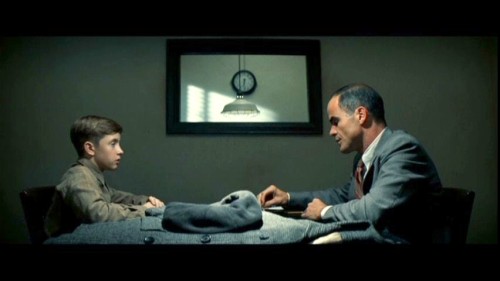 A chance lead forces a child welfare officer—superbly and compassionately played by Michael Kelly, interrogating a runaway in the scene below—to investigate a chicken ranch in Wineville, California. He concludes that Walter is more than likely among twenty boys who have gone missing only to wind up brutally murdered in remote Wineville–today’s Mira Loma. And his discovery eventually confirms Mrs. Collin’s protests. The little boy the LAPD brought home is an impostor.