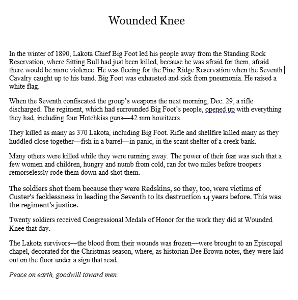 And then there’s Wounded Knee. This is from a piece I wrote eight years ago.