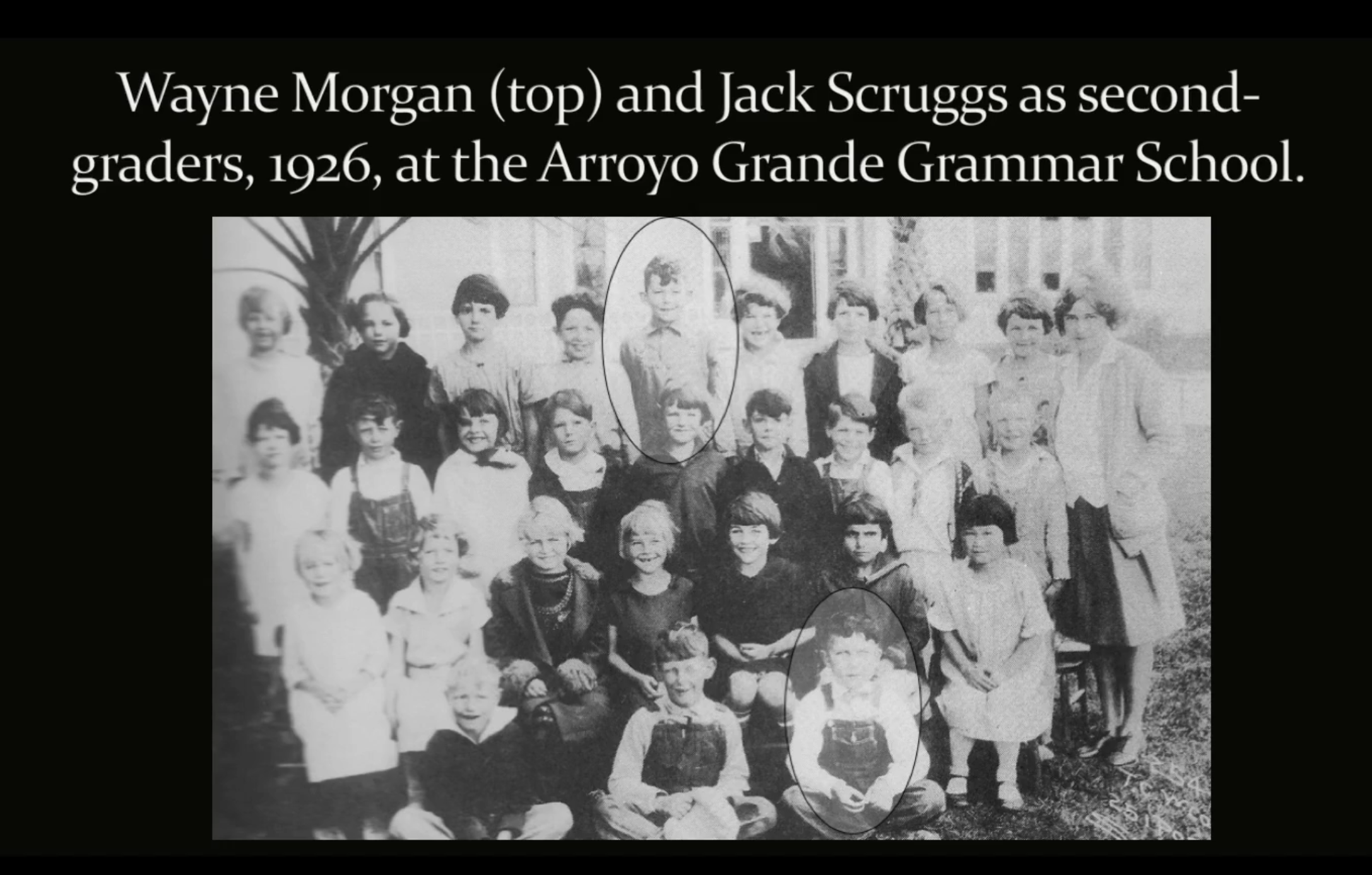 Schools are places to learn lessons like these. They are places, too, where boys and girls have the chance, in the confines of a little second-grade classroom, to build friendships that last for life. The two little boys below were second-grade friends at Arroyo Grande Grammar School in 1926.