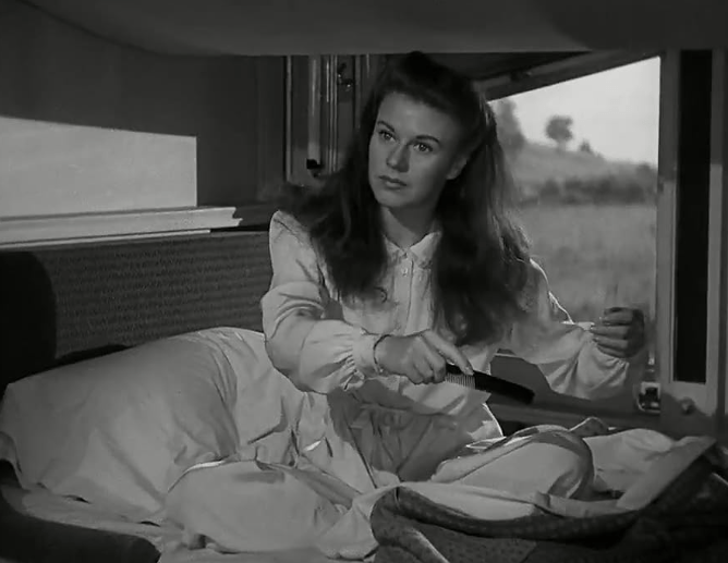 When the conductors catch her smoking at the end of her day-car, she swallows the lit cigarette. That scene is a gift.