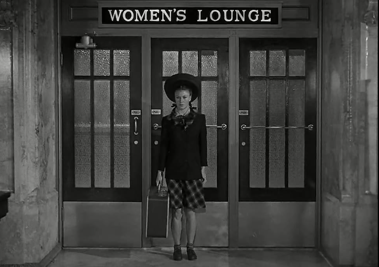 One of my favorite scenes is the school dance where Rogers is the only young woman without a Veronica Lake hairdo. (Kim Basinger, in another beloved film, L.A. Confidential, is a call girl whose plastic surgeries and haircut have made her a Veronica Lake lookalike.)