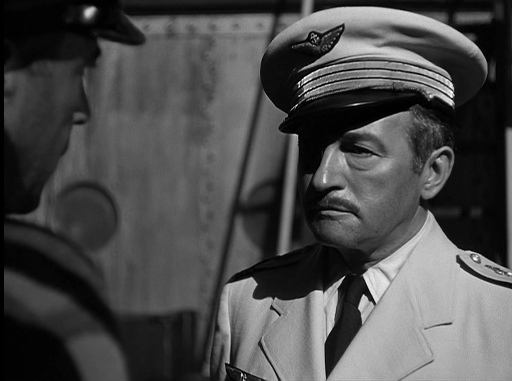And Marseille is evidently located on the far side of a big tub of water on the Warner Brothers back lot. An ocean it’s not. The camera fortunately just misses the fingertips of the technicians who are pushing the little boat around.