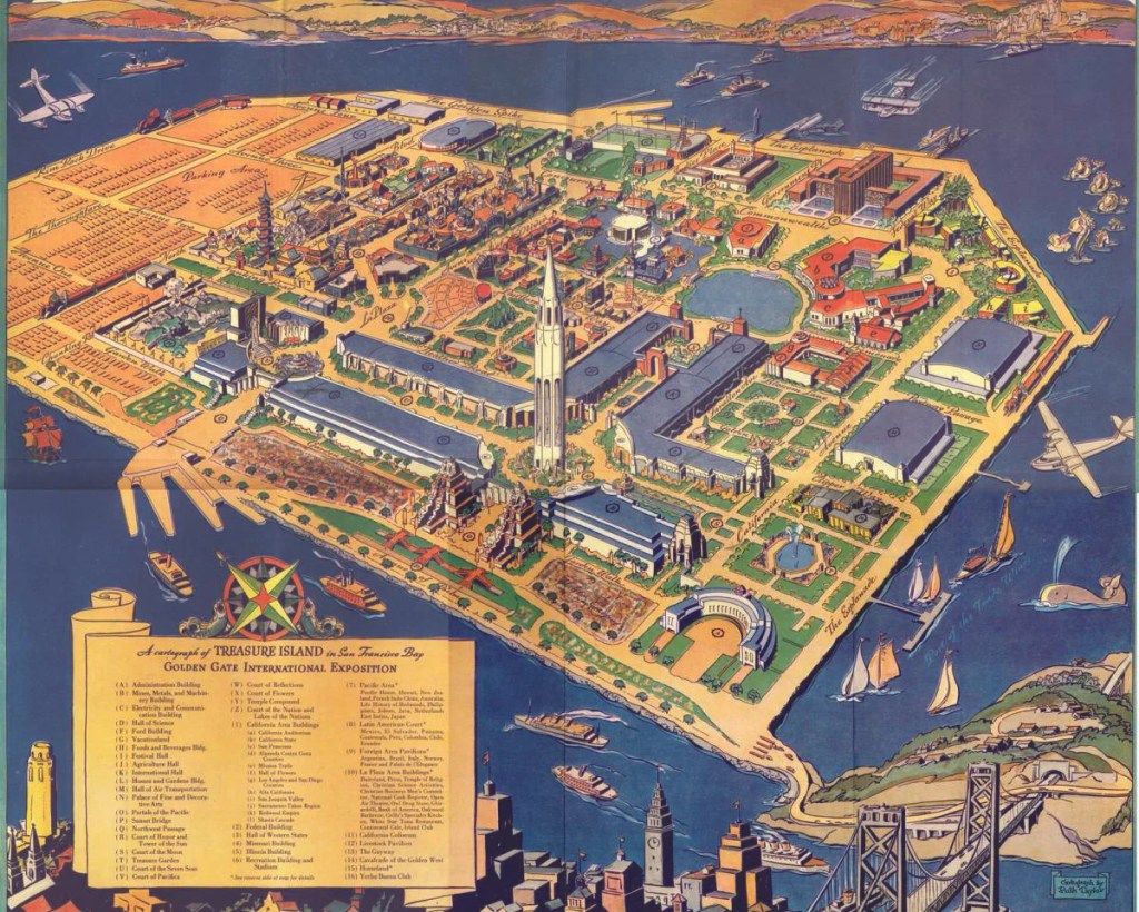 In 1939, San Francisco’s Treasure Island was the site for the Golden Gate Exposition, a showcase dedicated to a world beginning to emerge from the Great Depression. The Exposition was a masterpiece of Art Deco design and, with California comfortably distant from Europe, tinges of optimism must’ve remained awhile; I imagine the fall of France ended all that.