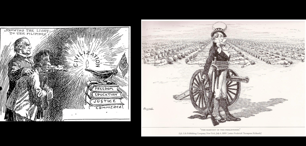“It is our duty,” President McKinley intoned in 1899, to explain why we weren’t leaving, to “uplift and Christianize” the Filipinos (80% of them were Roman Catholic, but that’s another story. That didn’t count as ‘Christianity’ in McKinley’s thoroughly Protestant America. When Al Smith ran against Herbert Hoover in 1928, some Hoover campaign buttons read simply A Christian in the White House.)