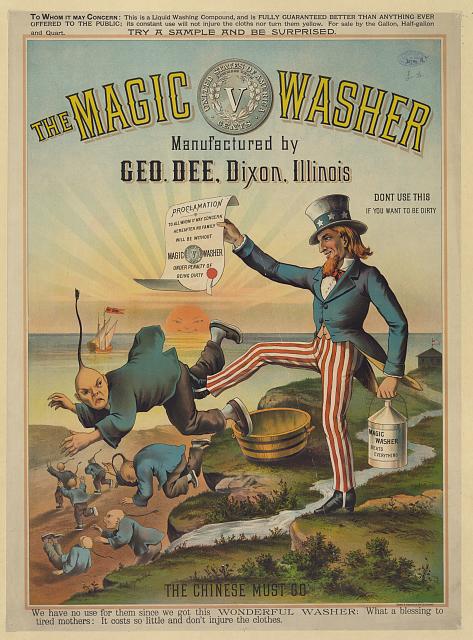 American Laundry: This is ominous. The name implies that this is not a Chinese laundry at a time when anti-Chinese bigotry was common. Masked men had driven Chinese residents out of Arroyo Grande in February 1886, only about six weeks before masked men lynched the Hemmis, father and son, suspected killers, from the railway trestle at the foot of Crown Hill. Meanwhile, there was an attempt to dynamite Sam Yee’s laundry in San Luis Obispo and an even less-subtle rival laundry was formed there: The Caucasian Steam Laundry. The notorious ad below, from about 1886, suggests that buying this detergent will help drive Chinese immigrants out of business and so out of America.