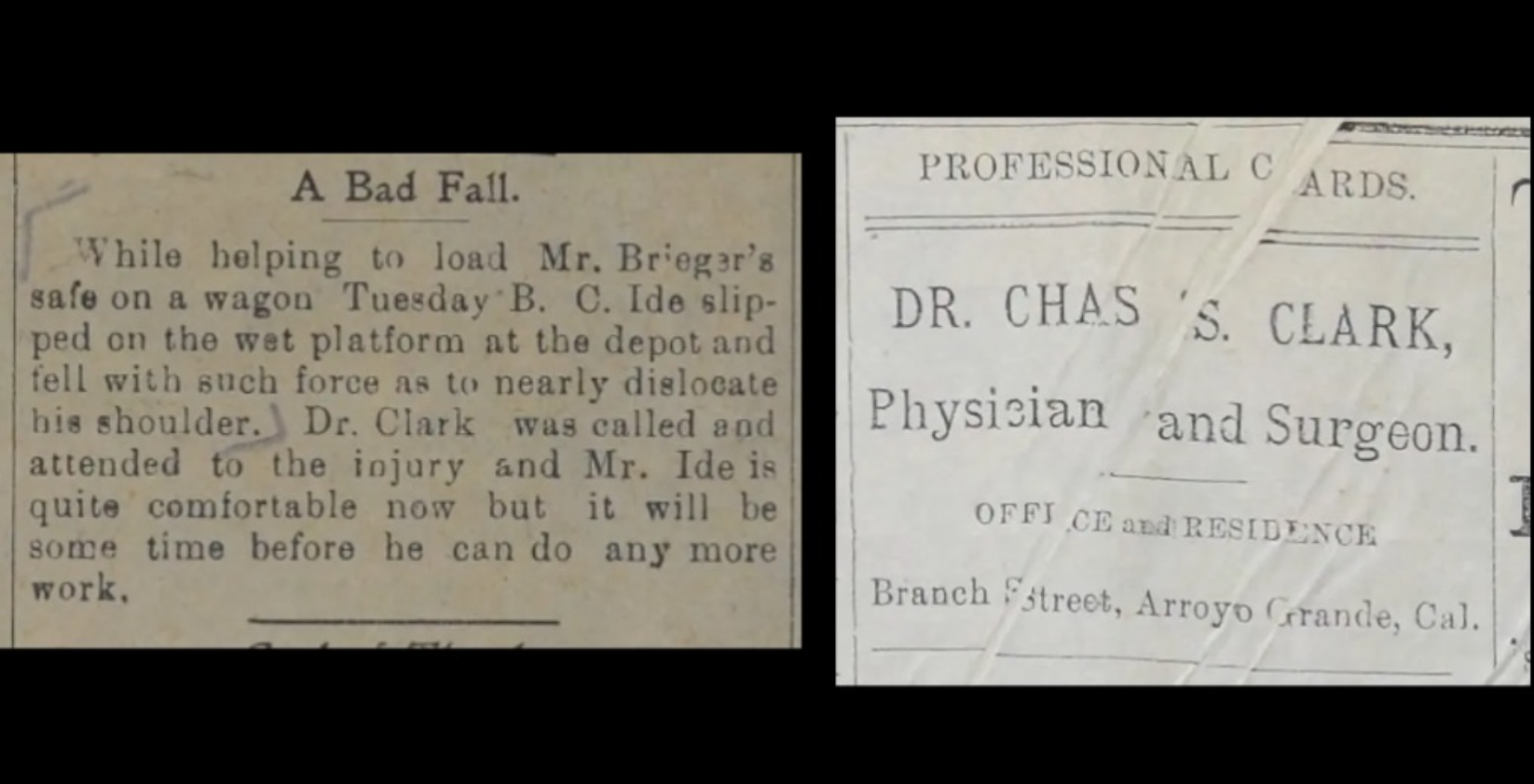 Union veteran Bela Clinton Ide of Arroyo Grande, San Luis Obispo County, California, had a bad day in September 1896, according to this clipping.
