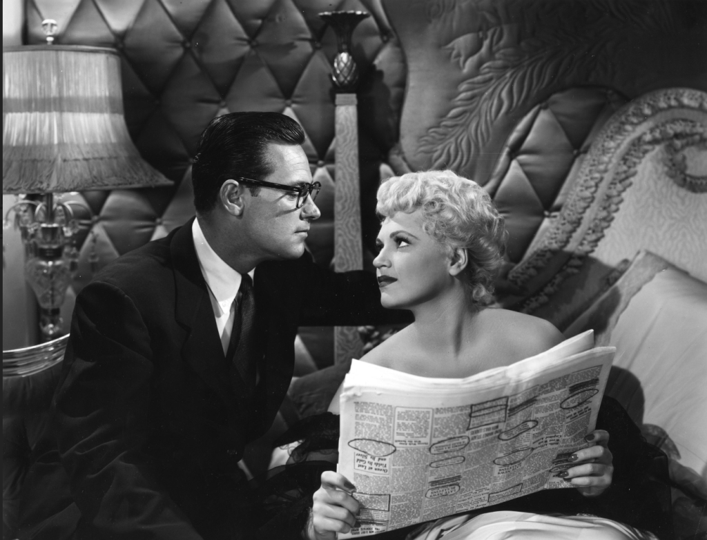 She is also spectacularly dumb. Until the screenwriter, the legendary Garson Kanin, who wrote the original play, starts to drop little breadcrumbs. She is Broderick Crawford’s “kept woman,” and when the two play gin rummy, she cleans him out three times in a row with the first hand she’s dealt.