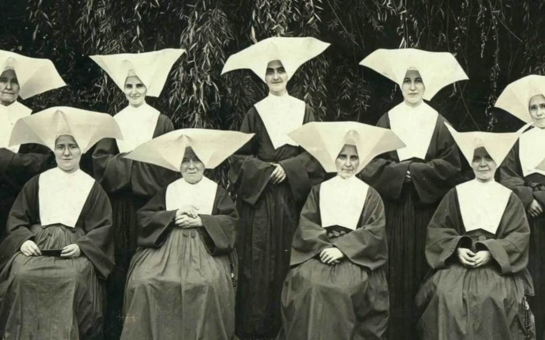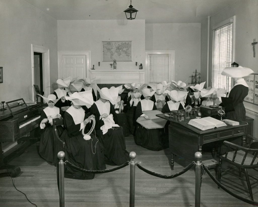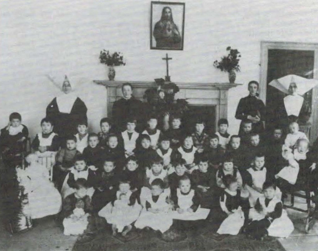 The headgear, the cornette, marked the Daughters. Here they are at their orphanage in Albany, New York, with some of their little charges: