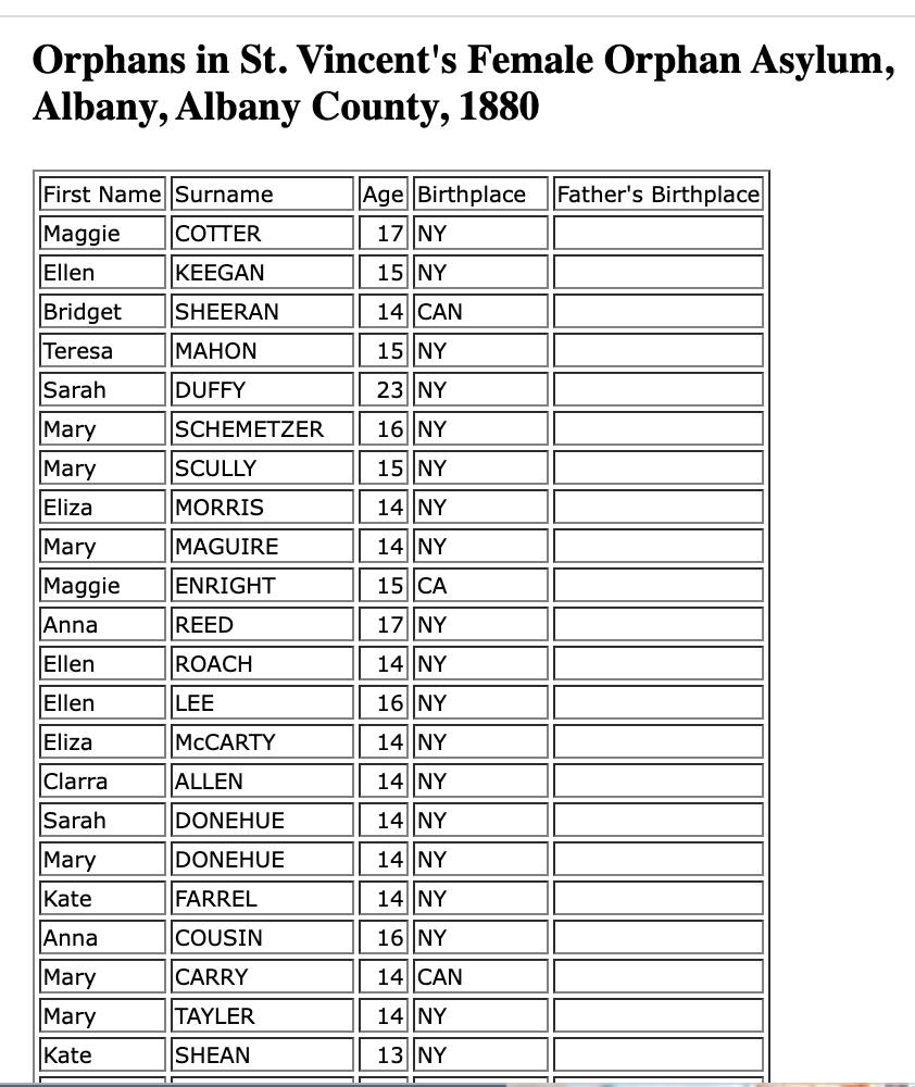And this poignant record reveals the names and origins of some of those Albany orphans (note that the fathers’ column is blank); judging from their ages, many would always be orphans. One hopes the Daughters had prepared them to cope with life as adults, which can be as cold as an Albany winter.