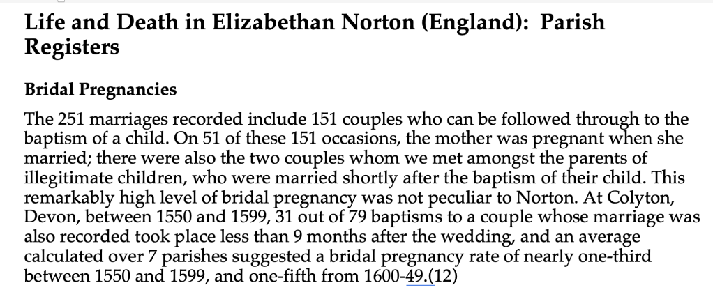 In early modern Europe, illegitimacy was a rare problem. Premarital sex wasn’t rare, not at all.