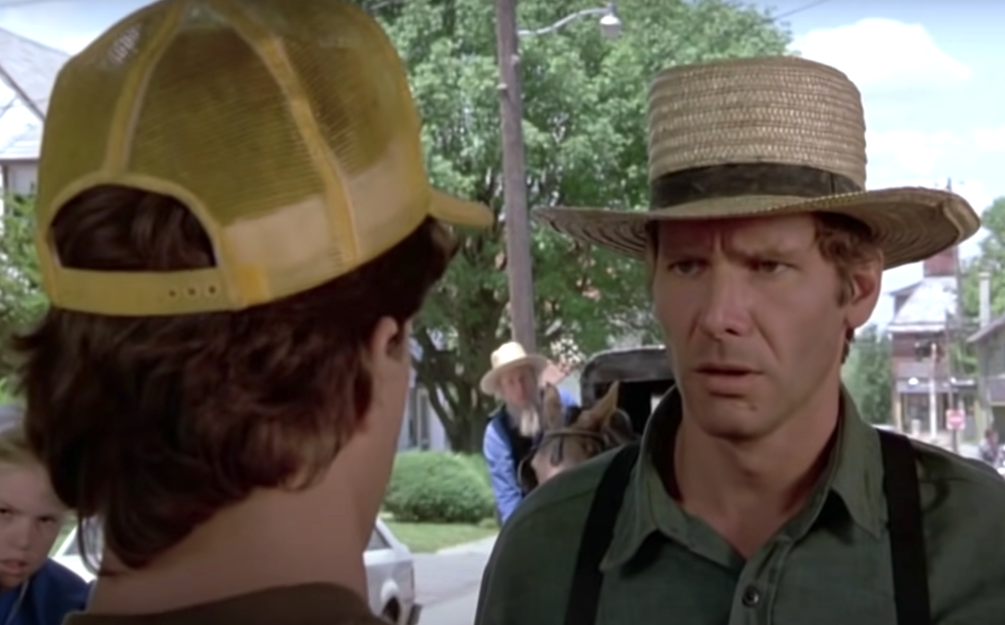 Lukas begins to run, but returns, rings his grandfather’s barnyard bell and so summons the neighbors, who run to the Haas farm. It’s there where John Book, backed by Amish in dense cornfield ranks, confronts his nemesis, Detective Capt. Schaeffer, and in a near-tearful fury, wears him down.
