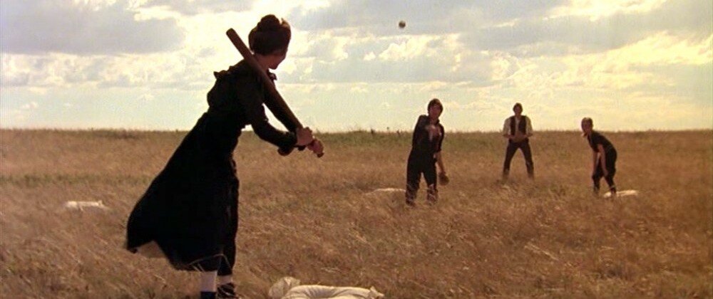 The opening is made perfect, too, I think, because of Malick’s choice of the Carl Orff song “Gassenhauer,” (“Street Song.”) This was not a film we’d seen before, not in 1973, the year of The Last Detail.