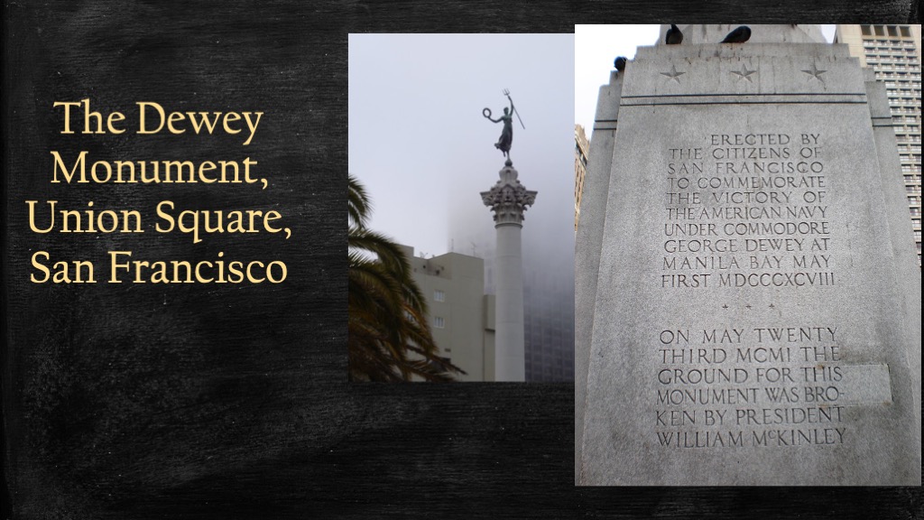I did not expect to find a George Dewey monument in Union Square in San Francisco on our recent visit. But it was there. And it was big. The Goddess of Victory, atop her column, appeared to be hailing a cab across the street at the St. Francis Hotel.