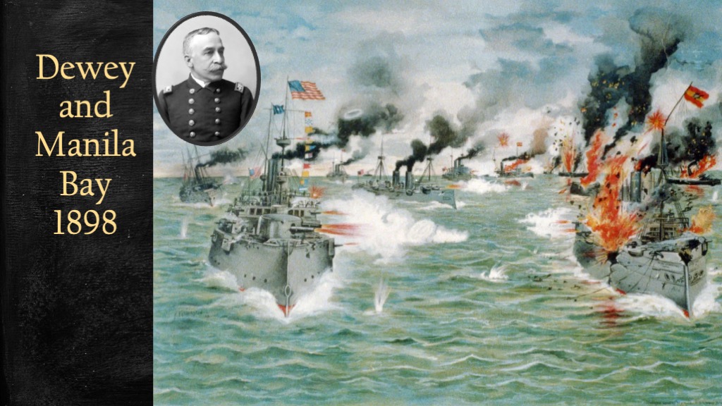 This is why it’s there: In 1898, in the Spanish-American War, Commodore George Dewey led an American fleet into Manila Bay and annihilated the Spanish Asiatic Fleet there. We lost one sailor, felled by sunstroke.
