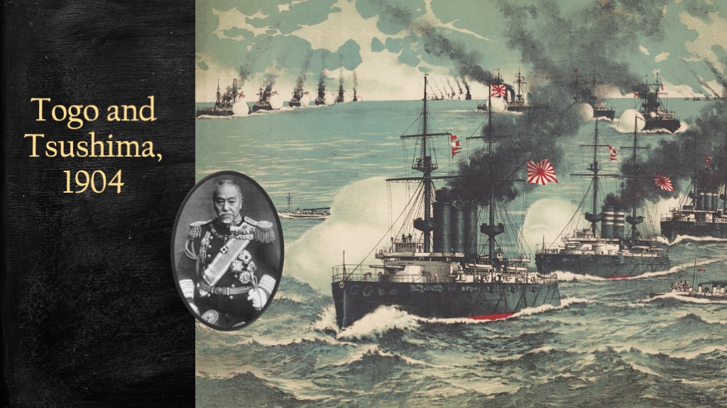 In 1904, Admiral Tōgō Heihachirō took on a Russian fleet in the Tsushima Straits. The Japanese sank 21 Russian ships, including seven battleships, and captured seven more. Togo lost three torpedo boats. Over 5,000 Russian sailors were killed; Togo lost 117.