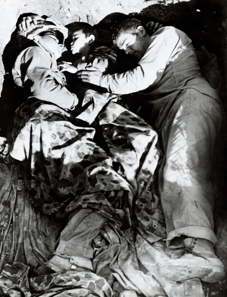 The second gets me misty. The little boy lost his immediate family in the horrific battle for Okinawa. The two young Marines cared for him until relatives were found.