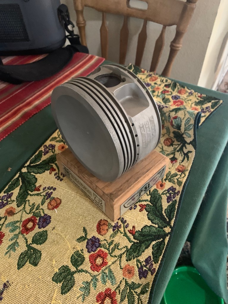 This piston head, which I treasure (along with my Civil War bullet, my fragment of the Berlin Wall and my piece of oak from HMS Victory), was a Christmas gift.