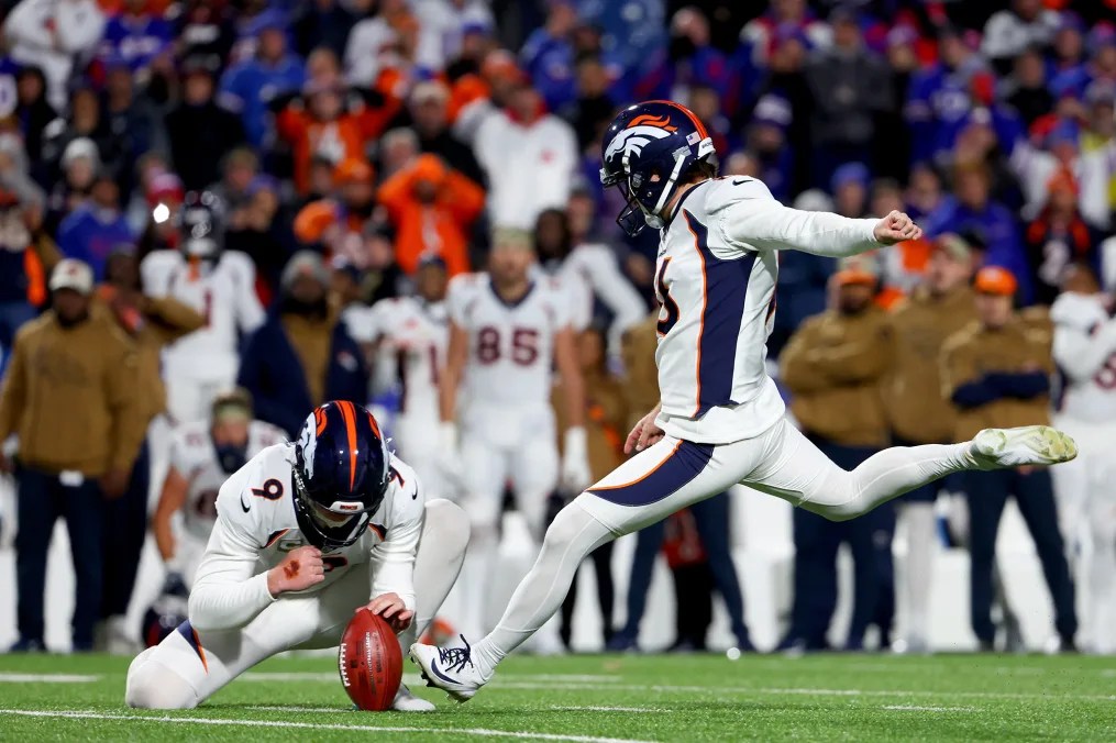 The Bills had twelve men on the field! The second field goal attempt is good: Broncos 24, Bills 22. THE KICKER, WIL LUTZ, IS A FOOTBALL HERO!