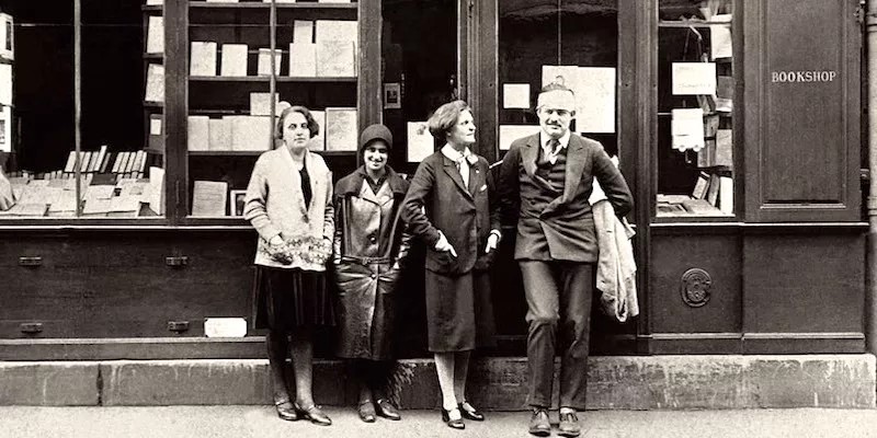 That’s Hem, with Shakespeare and Co. bookstore owner Sylvia Beach (he was recovering from a skiing accident) out in front of the bookstore, which faces Notre Dame. The cathedral, not the football team.