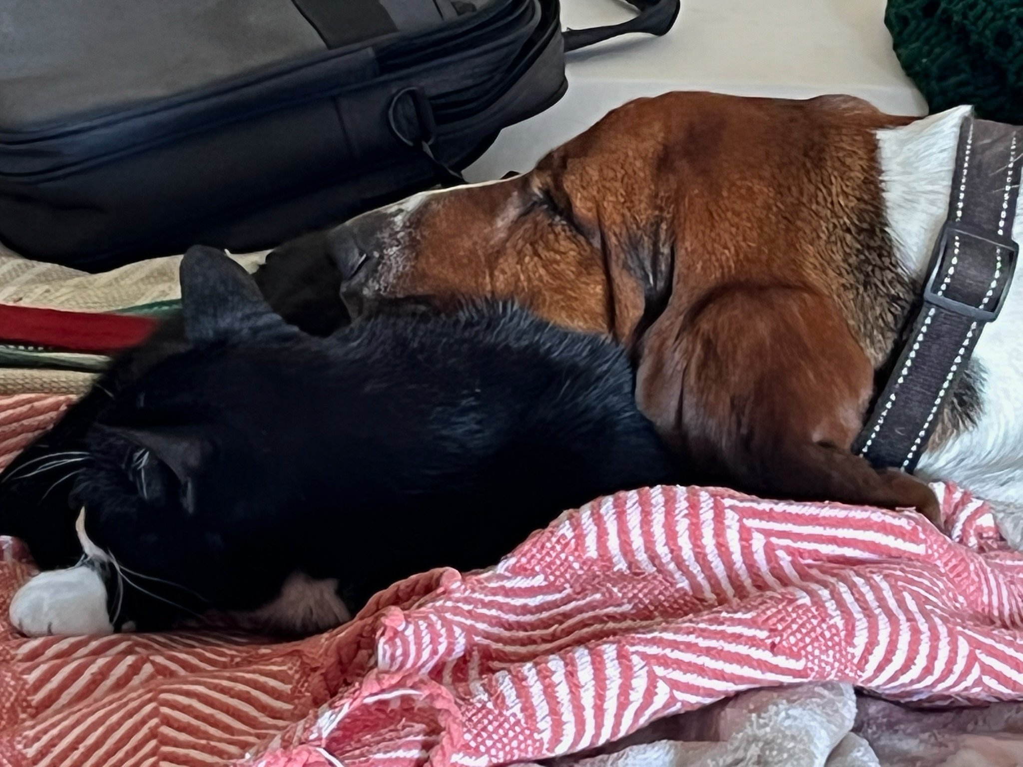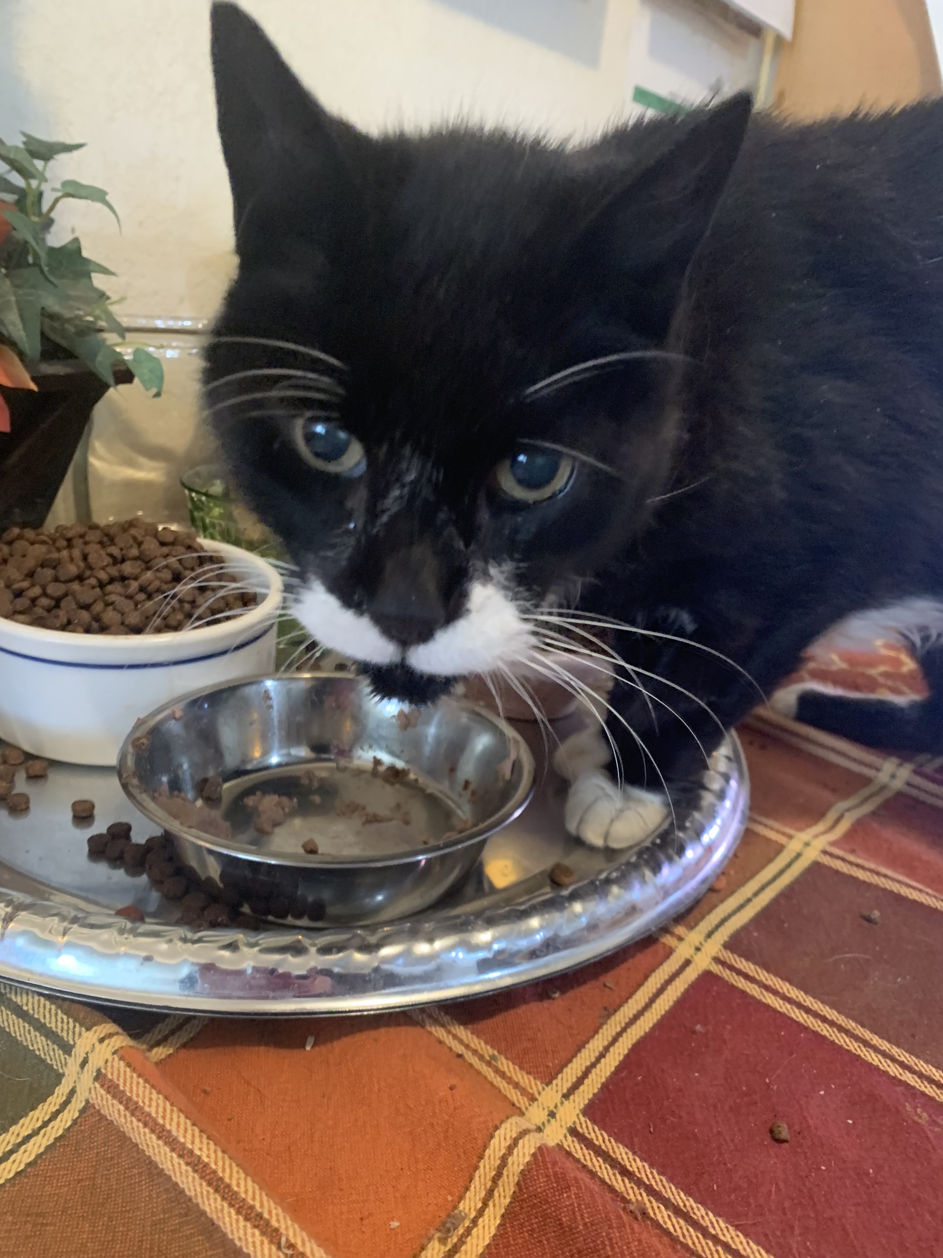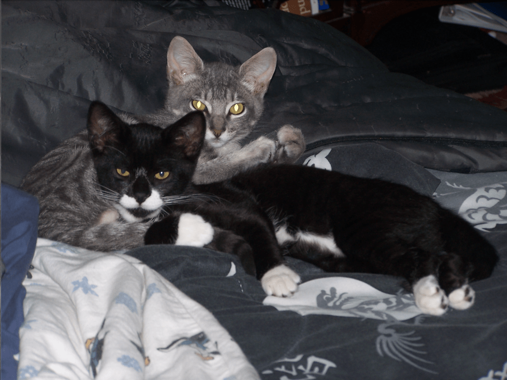 Then the Humane Society volunteer casually (maybe not) informed us that the gray tabby was the tuxedo’s brother.