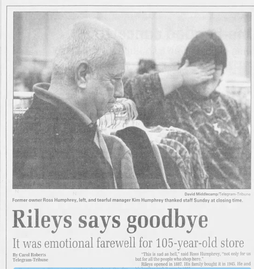 Riley’s closed in 1993, and this story by my friend Carol Roberts and this photo by my friend David Middlecamp are evocative of the response:
