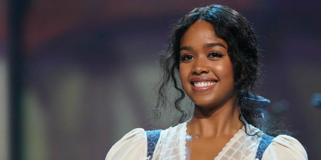 …I can be as shallow as any other male-type human being. While looking for something else (as usual) I ran across the trailer for the new Color Purple, based on the Broadway play that’s based on the 1985 film that’s based on Alice Walker’s 1982 novel. Dancing and singing? YES. How’d it do on the Tomatometer? 88%. Outstanding. Who’s in the cast? This is where I was halted in my tracks. The cast includes Hallee Bailey (left), whom I don’t know, and H.E.R., whom I do (here, she’s Belle in Beauty and the Beast) because I have a crush on her. So I am going to see this movie.