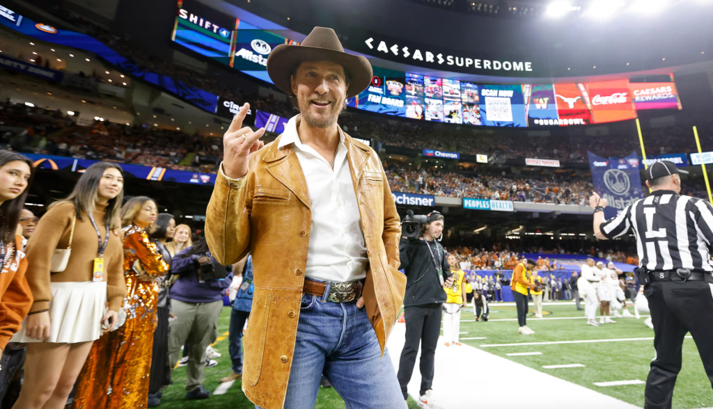 ..Still mad at TEXAS from the 2005 ROSE BOWL (they defeated USC) and there was then-QB Vince Young during the SUGAR BOWL. His beard was gray…Also on the Texas sideline was actor Matthew McConaughey, who was NOT nude in the film “Failure to Launch;” that was formers STEELERS QB Terry Bradshaw instead…