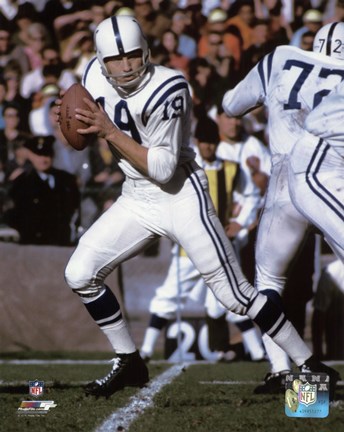 The Colts were led by Johnny Unitas, so old-school that he still wore high-top cleats (this pair sold for $6,000). If they had a Mr Rushmore (Perish the thought. Leave the Black Hills alone!) for quarterbacks, Johnny U. would be on it.